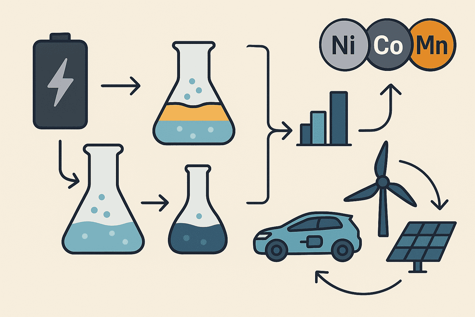 ✨ Sonuç: Ni–Co–Mn geri kazanımı, yalnızca bilimsel bir araştırma değil, aynı zamanda geleceğin enerji güvenliği ve sürdürülebilirliği için hayati bir adım.